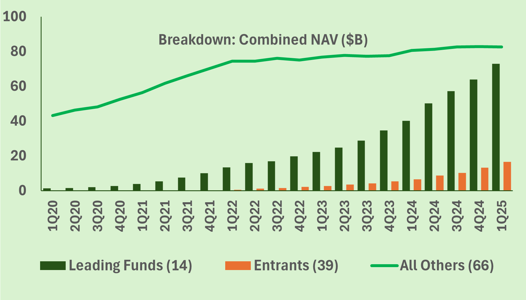 A few leading funds have driven recent growth in the Evergreen market (see below).